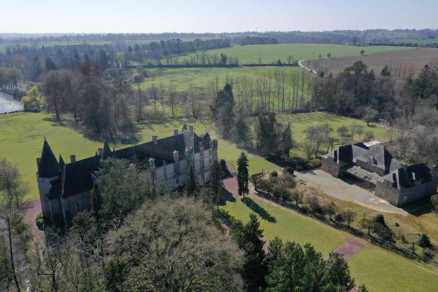 A substantial fortress stood in this peaceful valley In the middle of the 14th century and the chateau which stands there today benefits from the peace and tranquillity of the setting which remains, whilst benefitting from the good road and rail connections, Rennes with its TGV being just 30 kms away. A bridge spanning the large moat leads to an impressive wrought iron gate which marks the entrance to the main courtyard. The high roofs in lauze still stand as testament to the traces of the various periods of construction or adaptation of this impressive historical monument. Today the castle has approximately 300m2 on each floor and the accommodation comprises;