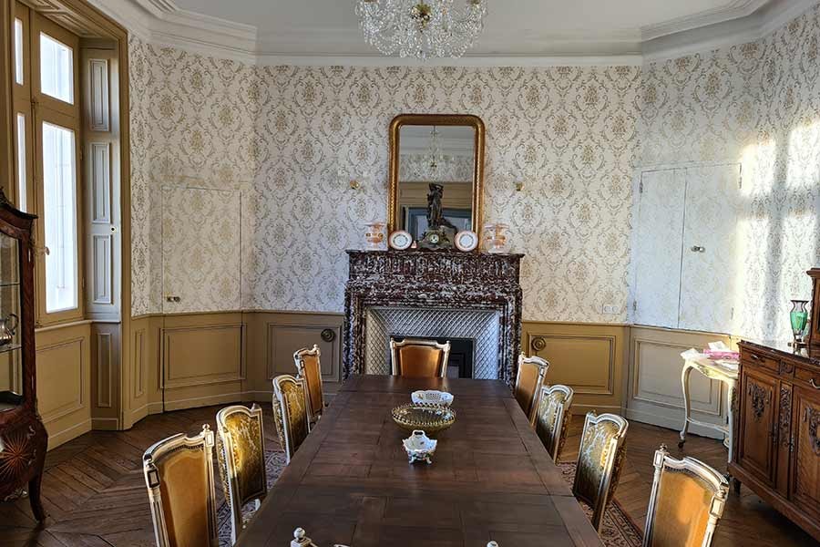 First floor: Reached by an oak staircase. its handrail supported by a tulip pattern rod, there are three main bedrooms, a well equipped shower room, a bathroom, a wardrobe and two small rooms in the towers.