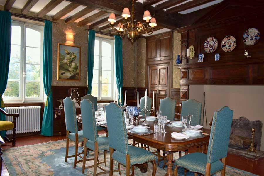 The chateau has its own special magic being built in direct alignment with the equinox. This allows the sun to rise in direct alignment through the hall and set in the centre of the back entrance. Each room tells a story of its history with its markings and period features. These period features not only include chestnut wood panelling, original feature fireplaces and stunning“Cube Moyen”(illusionary) flooring, but also period built-in cupboards and original painted doors. All these add to its character and tell its history. In 2006, the chateau was entirely re-wired and re-plumbed with a new central heating boiler, complimenting the wood burning fireplaces.