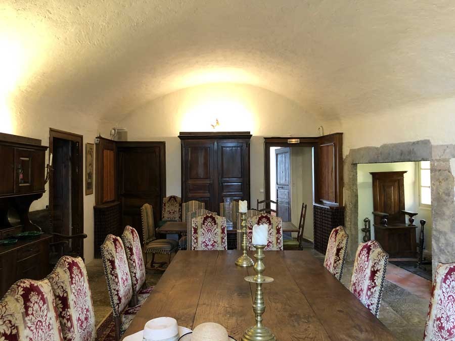 Superb 13th C. Chateau for sale, at the summit of the village overlooking its beautiful walled gardens, terraces and surrounding pretty rolling countryside. It consists of a square Keep connected to a tower with machicolations. The main building holds the reception rooms and most bedrooms. Enormous commercial potential with numerous outbuildings. Well maintained, it has retained its traditional atmosphere. Lovely gates into the grounds. An impressive porch to the courtyard & terrace with magnificent panoramic views. Guard room used as boot room, pantry and storage room.