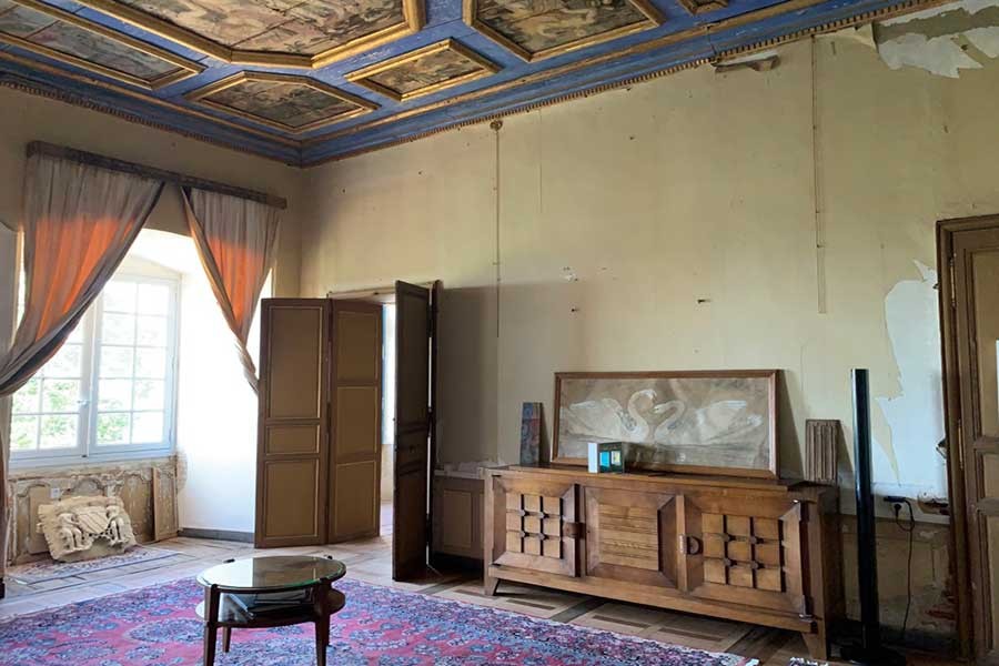 A large entrance hall with a stone staircase. The Main reception room of 110m2. Further living rooms of 31 and 45m2, a dining room of 44m2, Kitchen, 30m2 approx, Five large bedrooms, two of 37m2, 26m2, 24m2 and 14m2 respectively. Two bathrooms. Ceilings with some marvellous 16 and 17th century paintings.